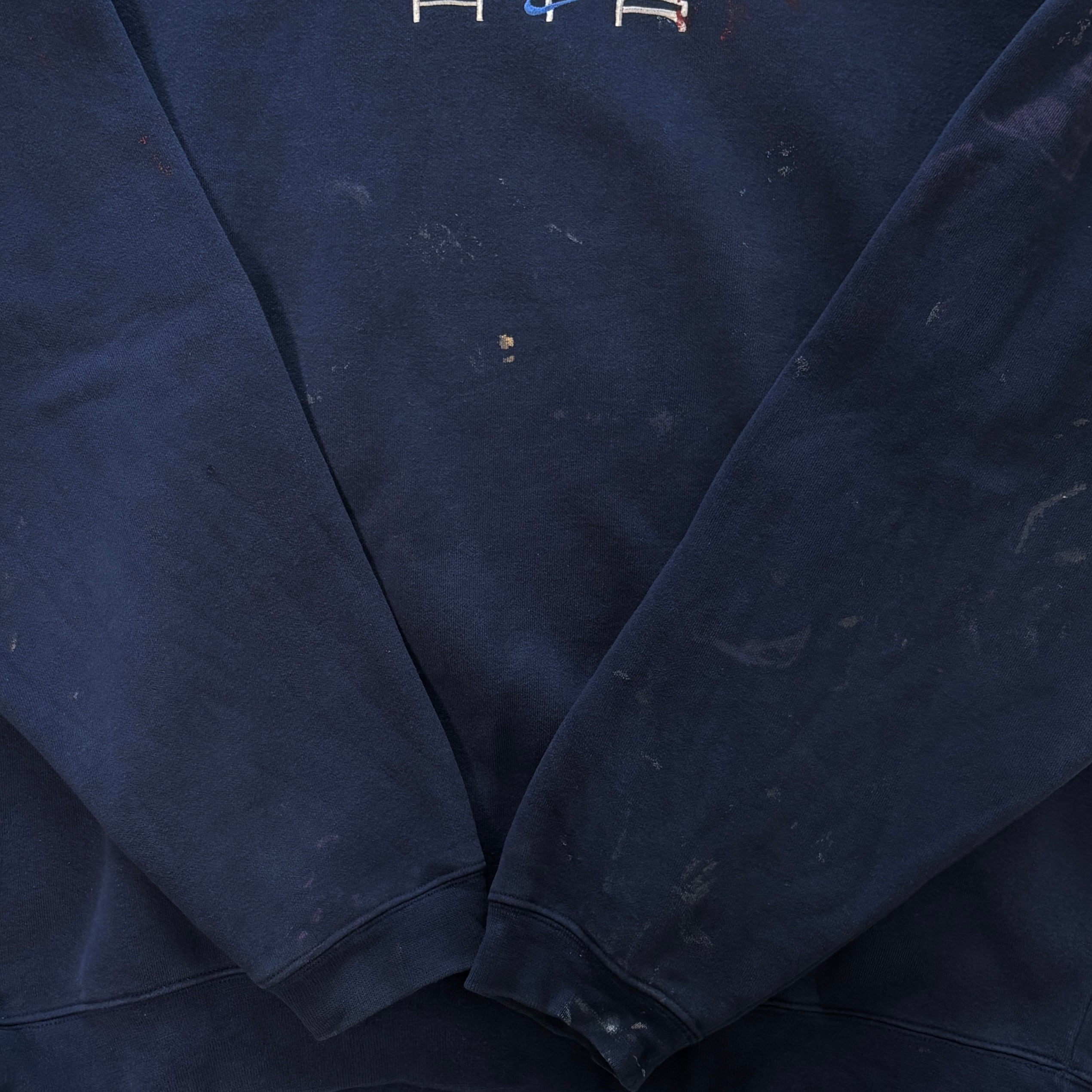 ほどよくフェードしたネイビーボディにペンキ飛び、好きな人には分かる1着です。